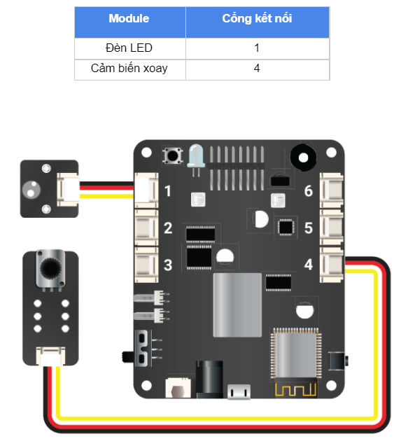 Trong bài học này, chúng ta sẽ sử dụng tín hiệu Analog Output để tăng giảm độ sáng của đèn LED bằng giá trị của cảm biến xoay.