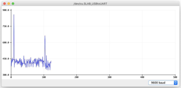 Sau khi chạy chương trình, bạn có thể xem giá trị của cảm biến âm thanh từ cửa sổ Serial Monitor, bằng cách vào mục Tools -> Serial Plotter. Bạn thử vỗ tay phát ra tiếng động hoặc chạm nhẹ vào microphone của cảm biến để thấy sự thay đổi của giá trị cường độ âm thanh bằng biểu đồ.