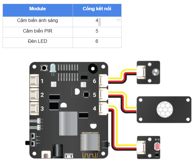 Trong chương trình trên, chúng ta sẽ sử dụng các hàm đơn giản đã học là digitalRead() để đọc tín hiệu Digital từ cảm biến PIR và hàm analogRead() để đọc giá trị cảm biến ánh sáng. Sau đó, chương trình kiểm tra điều kiện có phát hiện sự chuyển động và trời có đang tối không để bật đèn.