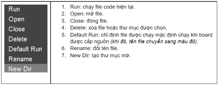 SD:là thư mục chứa các file của thẻ nhớ SD gắn với board (nếu có) đang kết nối.