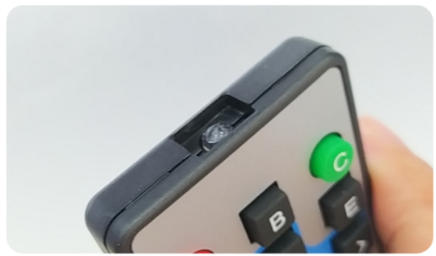 Board xController được tích hợp sẵn 2 đèn LED hồng ngoại, một LED thu và một LED phát. Bộ xBuild Creator Kit cũng đi kèm một remote hồng ngoại để chúng ta thực hành.