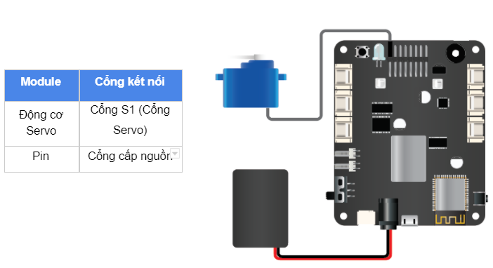 Lưu ý: Để sử dụng động cơ Servo thì bộ điều khiển xController cần phải được cấp nguồn từ nguồn ngoài (như từ pin) vì nguồn từ USB không đủ điện năng để chạy động cơ.