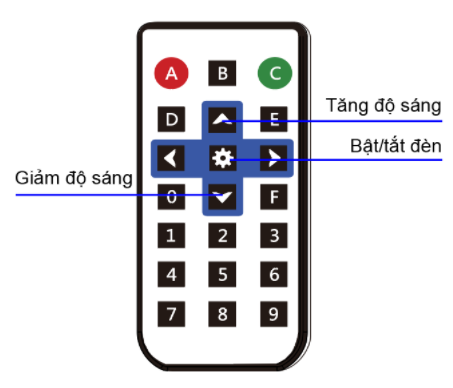 lênvàxuống. Mỗi lần tăng giảm 25% độ sáng.Bật hoặc tắt đèn LED bằng phím