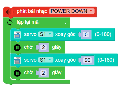 Trong danh mục khối lệnh Di chuyển, sử dụng 2 khối lệnh sau để điều khiển servo của đầu nâng: