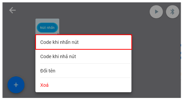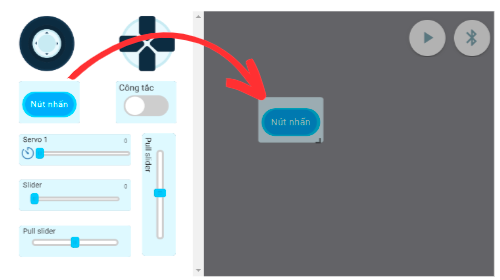 Giao diện mới sẽ mở ra, bạn kéo thả icon Nút nhấn thả vào vùng điều khiển bên phải như sau: