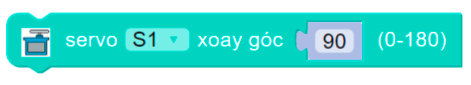 Trong danh mục Di chuyển, sử dụng khối lệnh sau để điều khiển servo của tay gắp: