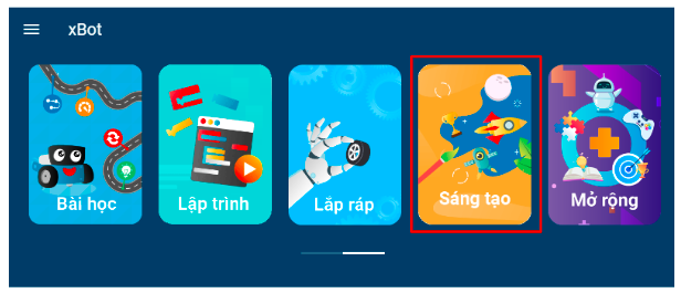 Từ giao diện lập trình thiết bị xBot, bạn chọn vào Sáng tạo: