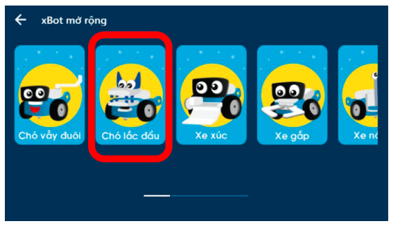 Vào VovinamStem App > Chọn thiết bị xBot > Mở rộng > Chó lắc đầu.