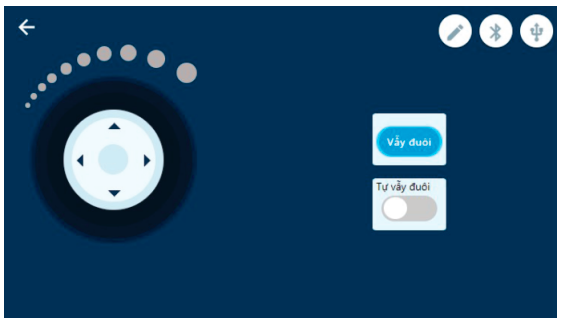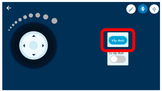 Vào VovinamStem App > Chọn thiết bị xBot > Mở rộng > Chó vẫy đuôi.