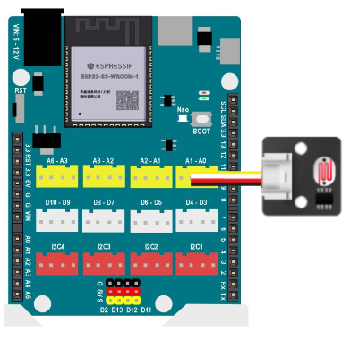 Kết nối cảm biến ánh sáng vào cổng A0 của Yolo UNO.