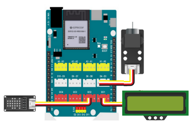 Kết nối cảm biến nhiệt độ DHT20 và màn hình LCD1602 vào cổng I2C