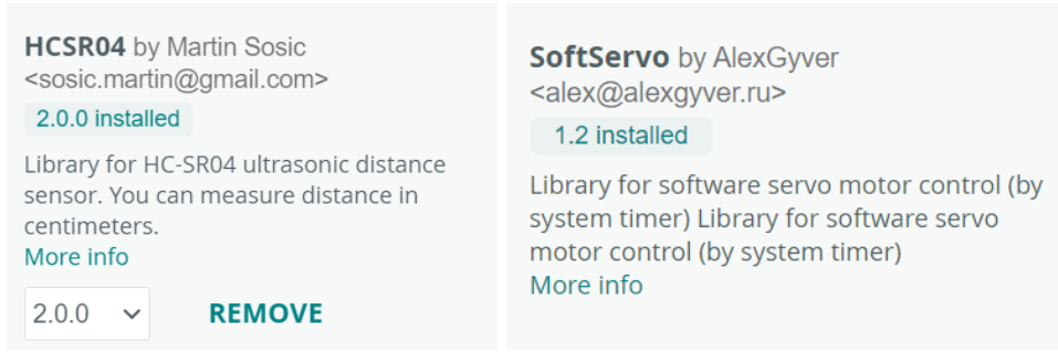 Bạn cần cài đặt thư viện HCSR04 và SoftServo: