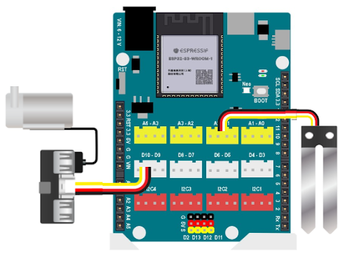 Kết nối cảm biến độ ẩm đất vào cổng A1: