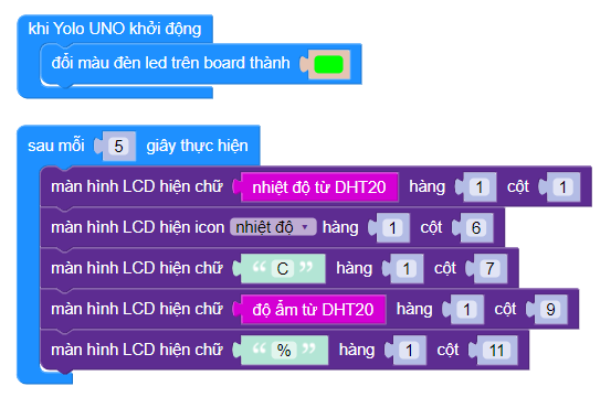 Các khối lệnh để đọc thông số nhiệt độ hoặc độ ẩm của cảm biến DHT20