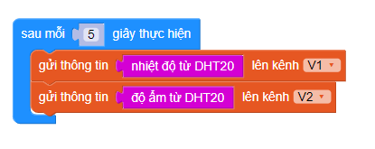 Giải thích: Sau mỗi 5 giây, thông tin từ cảm biến nhiệt độ và độ ẩm sẽ gửi kết quả lên bảng điều khiển.