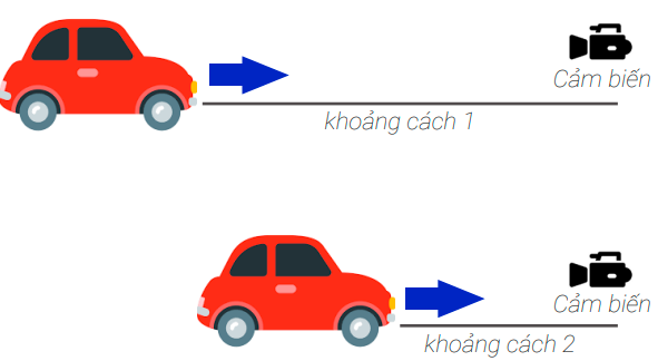 Ta sẽ tiến hành đo khoảng cách đến xe trong 2 mốc thời gian khác nhau, từ đó tính ra quãng đường xe đi được: