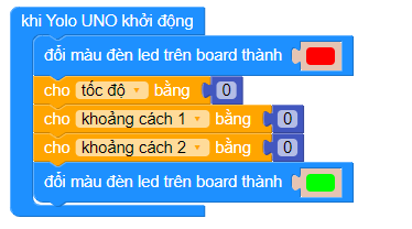 Tạo 3 biến để chứa giá trị tốc độ, khoảng cách 1 và khoảng cách 2. Gán giá trị 0 cho các biến này