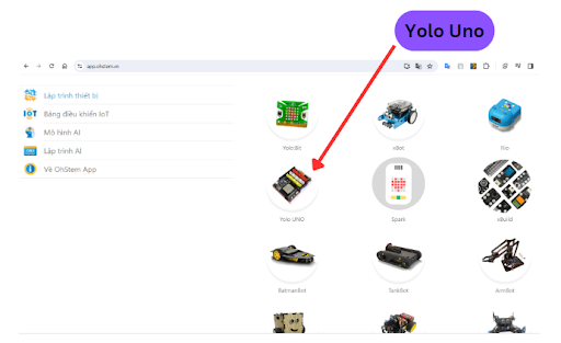 3. Các thao tác với Yolo UNO trên VovinamStem App