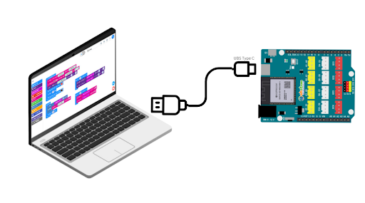 Kết nối dây USB type C với Máy tính và Yolo UNO.