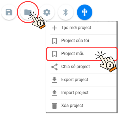 Bước 1: Chọn vào biểu tượng thư mục trên thanh công cụ và chọn Project mẫu: