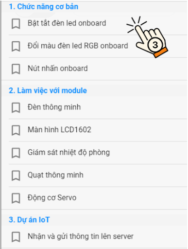 Bước 3: Chương trình mẫu sẽ hiển thị trên màn hình, bạn chỉ cần nhấn nút chạy chương trình. (Nếu chưa kết nối thực hiện lại nội dung 1)