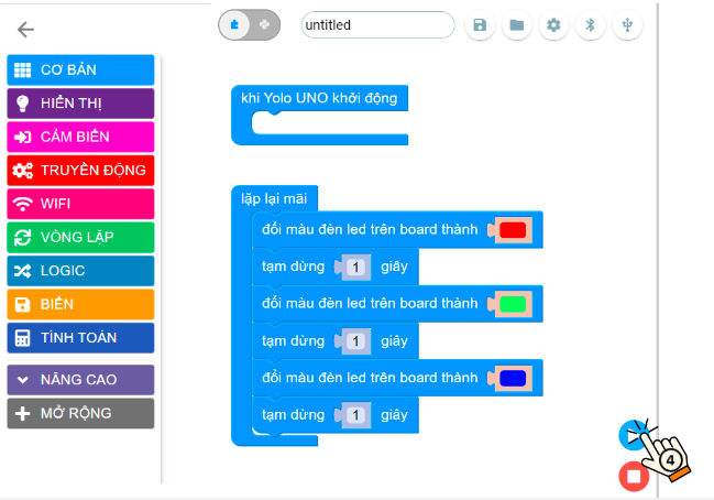 Sau khi lưu thành công, chúng ta cần reset lại mạch ở bước này, để khởi động lại mạch Yolo UNO.