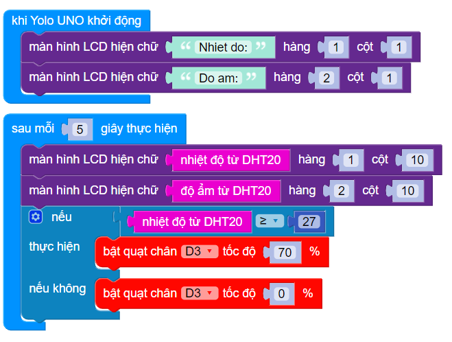 Nếu nhiệt độ lớn hơn 27 độ thì quạt sẽ bật