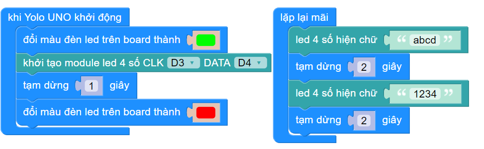 Kết nối màn hình LED 7 đoạn vào cổng D3 - D4: