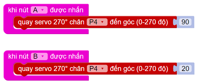 Quay Servo chân P4 đến góc 20 độ (đóng nắp thùng rác)