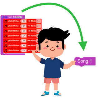 Hàm giống như việc bạn tạo thêm một loại khối lệnh mới để sử dụng, và khối lệnh này bao gồm các khối lệnh con bên trong