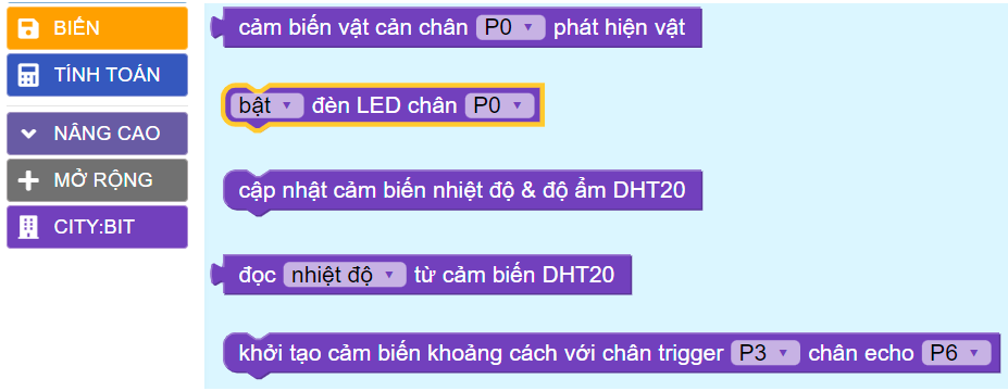 Bước 2: Sau khi tải thư viện xong, trong danh mục khối lệnh bên trái sẽ xuất hiện CITY:BIT