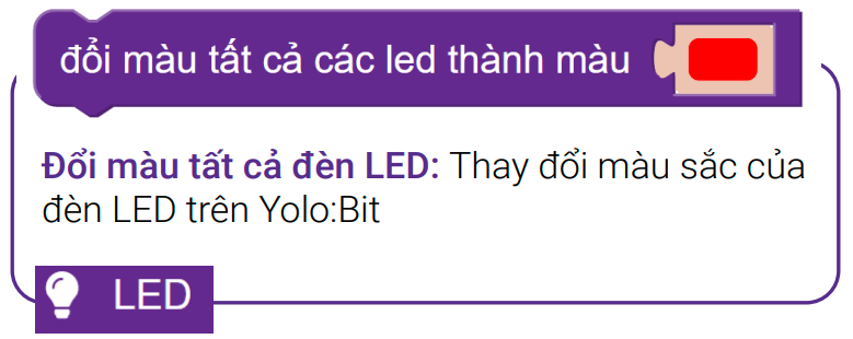 Kéo khối lệnh đổi màu tất cả đèn LED thành màu đỏ vào phần Thực hiện