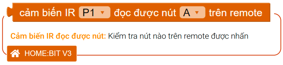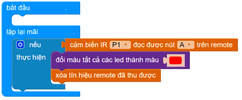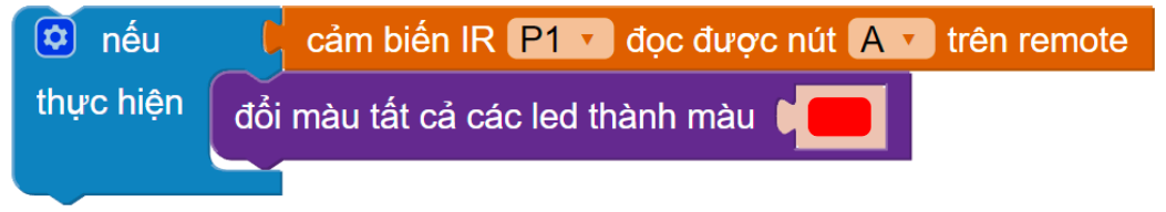 Kéo khối cảm biến IR đọc được nút A vào phần Nếu