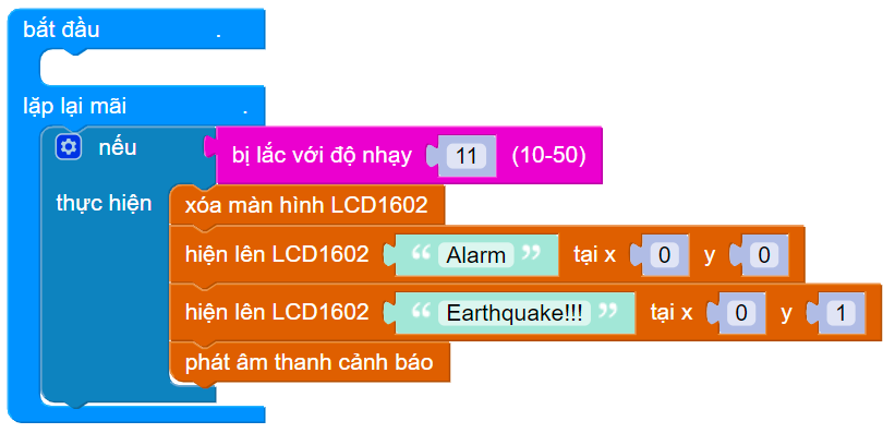 Trong bài học này, chúng ta sẽ lập trình để ngôi nhà thông minh phát ra âm thanh báo động khi gặp phải động đất, dựa trên cảm biến gia tốc được tích hợp sẵn trên Vovinam:Bit. Khi phát hiện bị lắc, Vovinam:Bit sẽ phát ra âm thanh cảnh báo.