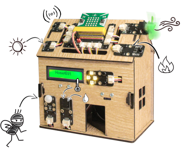 Home:Bit là ngôi nhà đồ chơi thông minh, giúp học sinh có thể tìm hiểu và xây dựng các tính năng hiện đại bên trong một mô hình Smart Home thực tế.