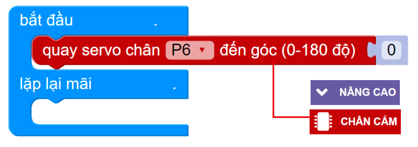 Kết nối Servo vào chân P6 trên mạch mở rộng đã gắn trên Vovinam:Bit