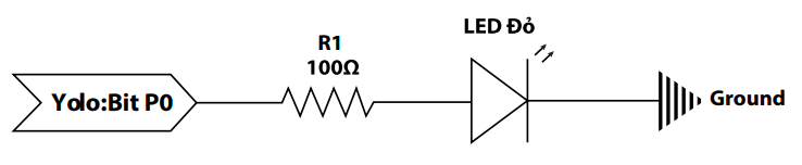 Khi bật chân P0 (P0 đóng vai trò như cực dương của nguồn điện), mạch điện sẽ kín, dòng điện chạy từ cực dương sang cực âm và đèn LED sáng do có dòng điện chạy qua.