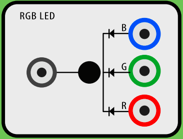 Đèn LED RGB có 4 chân, 3 chân nối với 3 đèn LED bên trong và 1 chân chung cho cả 3 LED này. Có 2 loại đèn LED RGB: loại chân chung nối với nguồn âm (GND) và chân chung nối với nguồn dương (VCC).