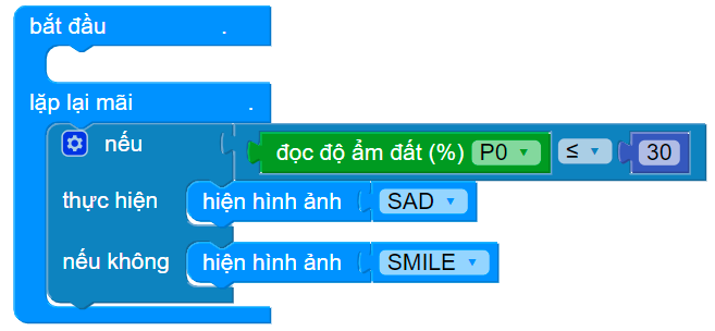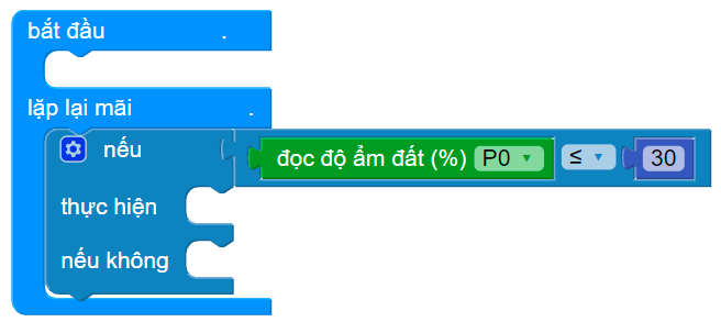 Đặt điều kiện nếu độ ẩm đất ≤ 30% như sau: