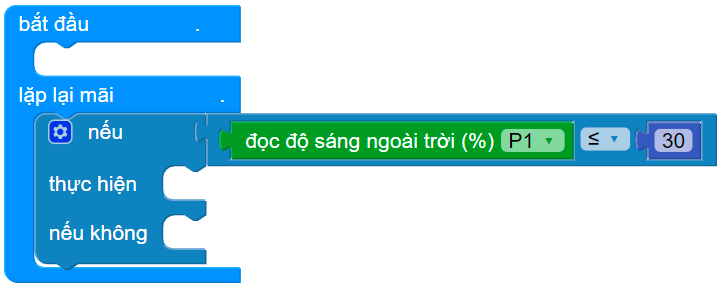 Tạo điều kiện: Nếu độ sáng ngoài trời ≤ 30 (cách thực hiện như bài 2)